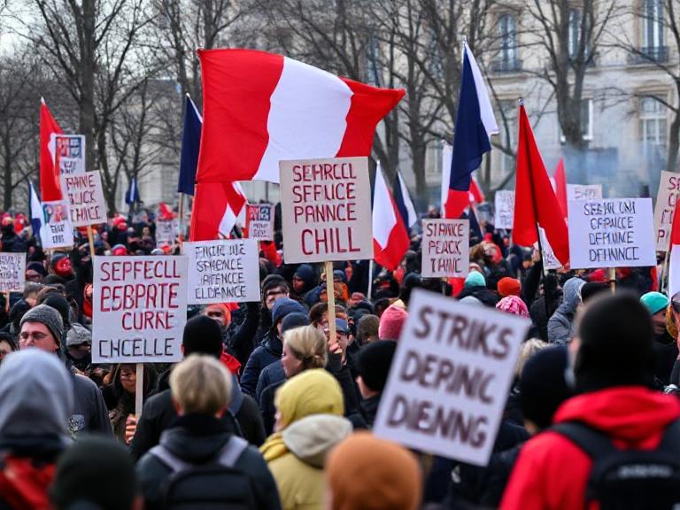 Alt text suggestion pour image : Manifestation lors d’une grève générale en France avec pancartes et slogans sociaux
