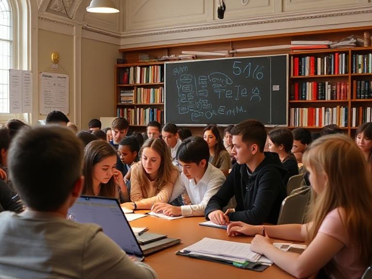 Alt text suggestion : Salle de classe traditionnelle en France avec des élèves attentifs